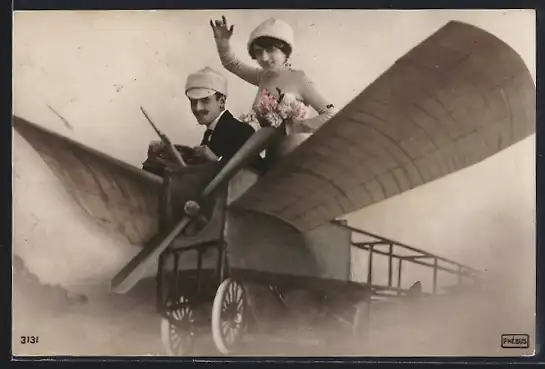 AK Flugzeug mit Dame und Herr