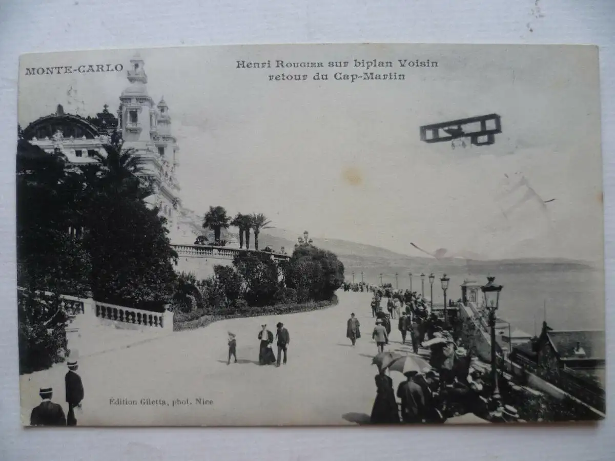 Henri Rougier sur biplan voisin retour du Cap-Martin.Gelaufen 1910, Marke entfernt, gering fleckig, gut erhalten.