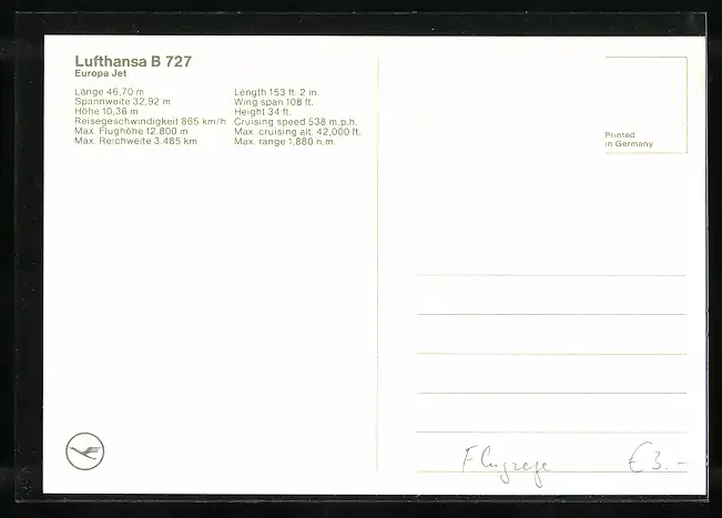 AK Flugzeug vom Typ Boeing 727 der Lufthansa