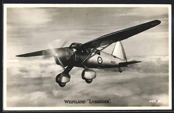 AK Flugzeug vom Typ Westland Lysander über den Wolken