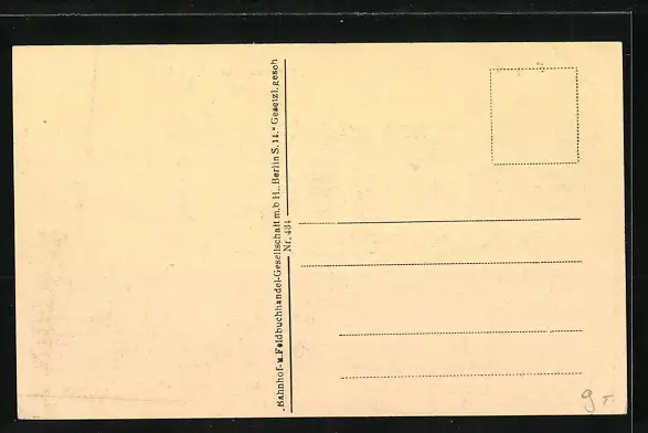 Personenbezogene Daten auf der Rückseite der Karte wurden durch blauen Textmarker unkenntlich gemacht. Die blauen Stellen sind auf die Vorderseite durchgeweicht und wirken sich negativ auf das Postkartenfoto aus