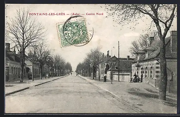 AK Fontaine-les-Grès, Centre Nord avec vue sur une rue bordée d`arbres et maisons