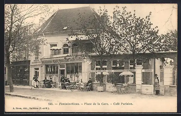 AK Fontainebleau, Place de la Gare, Café Parisien
