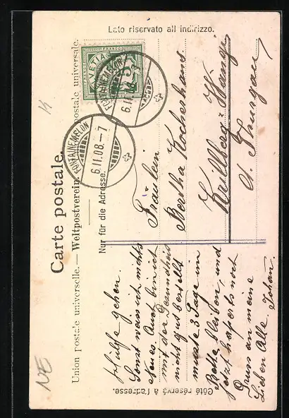 alte Ansichtskarte, gelaufen 1908, guter Zustand