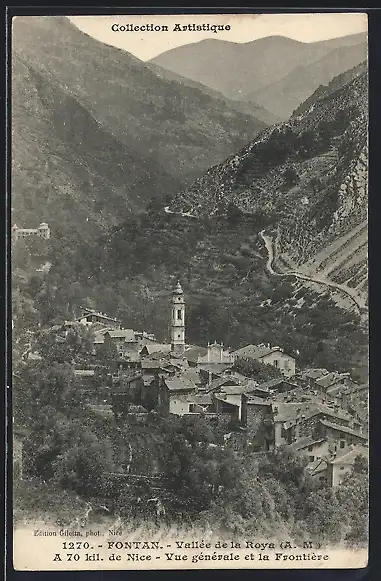 AK Fontan /Vallée de la Roya, Vue générale et la Frontière