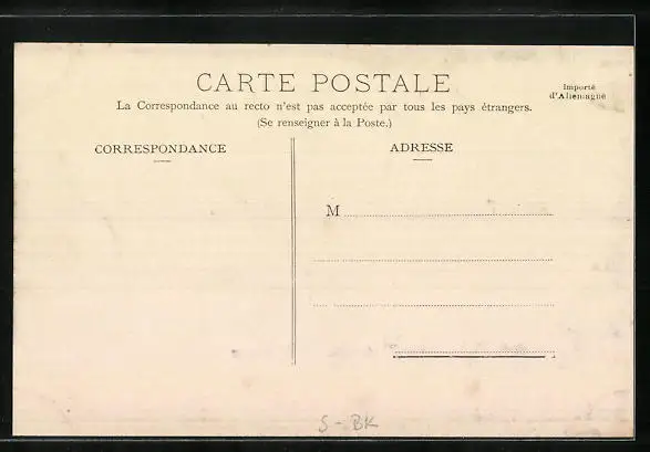 Personenbezogene Daten auf der Rückseite der Karte wurden durch blauen Textmarker unkenntlich gemacht. Die blauen Stellen sind auf die Vorderseite durchgeweicht und wirken sich negativ auf das Postkartenfoto aus