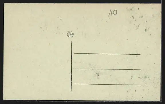 Personenbezogene Daten auf der Rückseite der Karte wurden durch blauen Textmarker unkenntlich gemacht. Die blauen Stellen sind auf die Vorderseite durchgeweicht und wirken sich negativ auf das Postkartenfoto aus