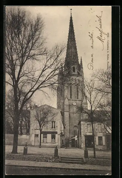 AK Fontenay-le-Comte, La Flèche de l`Église Notre-Dame