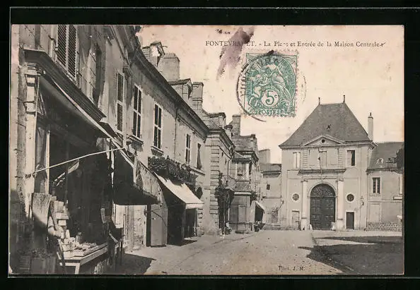 AK Fontevrault, La Place et Entrée de la Maison Centrale