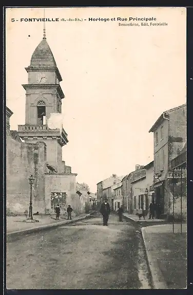 AK Fontvieille, Horloge et Rue Principale