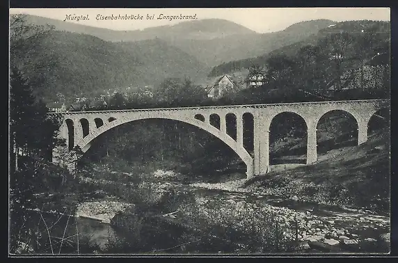 AK Forbach, Eisenbahnbrücke im Murgtal bei Langenbrand