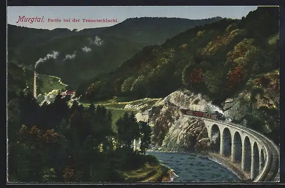 AK Forbach /Murgtal, Tennetschlucht mit Murgtalbahn