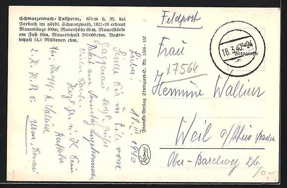 alte Ansichtskarte, gelaufen 1940, guter Zustand