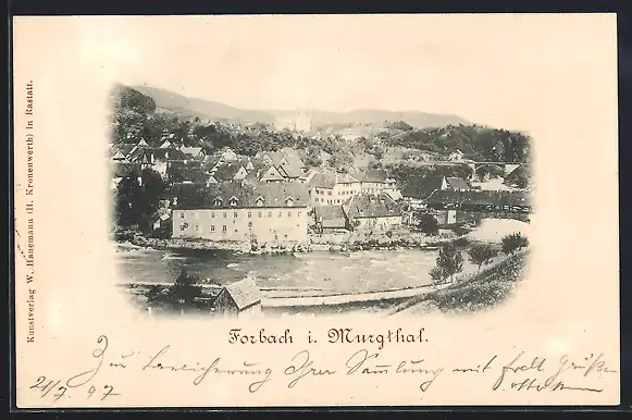 AK Forbach, Teilansicht des Ortes im Murgtal um 1900