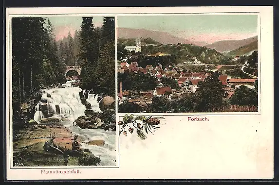 AK Forbach, Teilansicht mit Kirche, Raumünzachfall