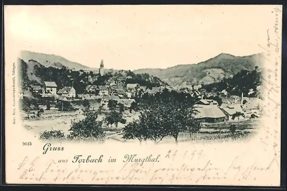 AK Forbach im Murgthal, Teilansicht mit Bergen