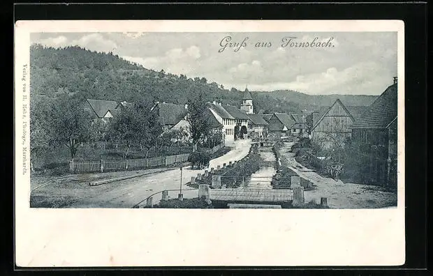 AK Fornsbach, Ortspartie mit Fluss und Kirche
