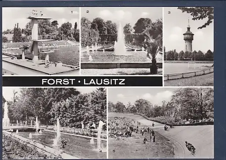 AK Forst Lausitz 5.Ansichten Schwimmbad - Rosengarten - Stadion und Wasserturm - Rosengarten - Radrennbahn, nicht gelaufen von ca. 1978