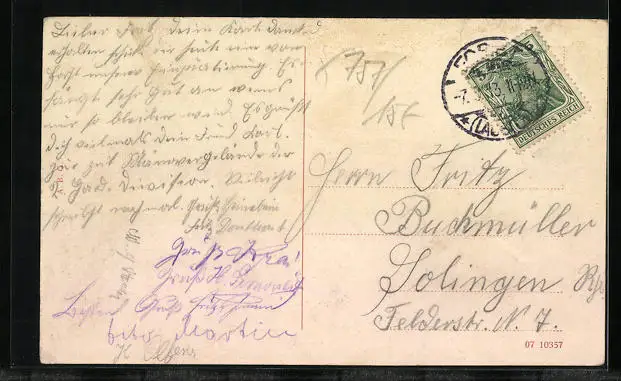 gelaufen 1913, Eckknicke links u. rechts, guter Zustand
