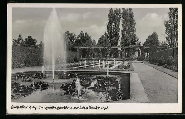 AK Forst /Lausitz, grosse Fontäne auf der Wehrinsel