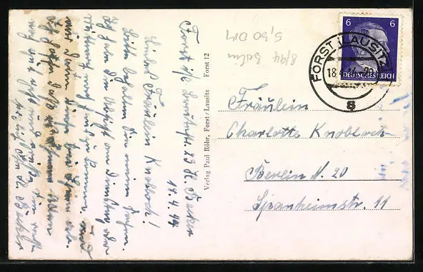 gelaufen 1944, rückseitig Oberflächenschaden, guter Zustand