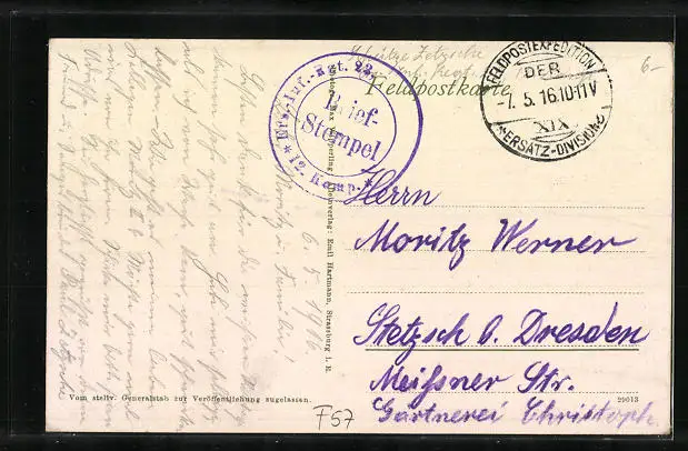 alte Ansichtskarte, gelaufen 1916 als Feldpost, guter Zustand