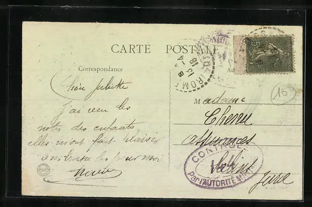 gelaufen 1918, leicht fleckig, sonst guter Zustand