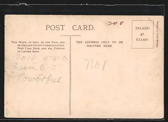 Personenbezogene Daten auf der Rückseite der Karte wurden durch blauen Textmarker unkenntlich gemacht. Die blauen Stellen sind auf die Vorderseite durchgeweicht und wirken sich negativ auf das Postkartenfoto aus