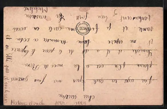 Personenbezogene Daten auf der Rückseite der Karte wurden durch blauen Textmarker unkenntlich gemacht. Die blauen Stellen sind auf die Vorderseite durchgeweicht und wirken sich negativ auf das Postkartenfoto aus