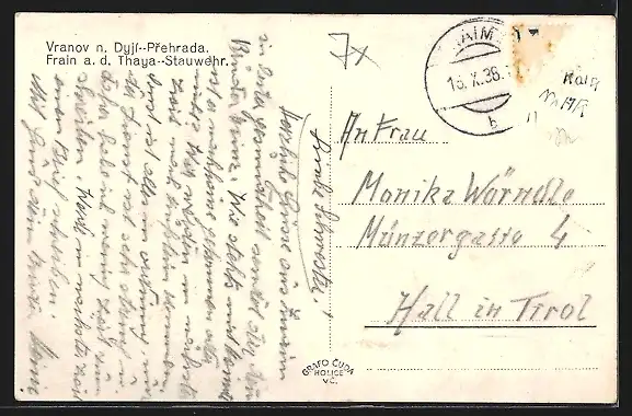 AK Frain / Vranov, Am Thaya-Stauwehr, Dyif-Prehrada