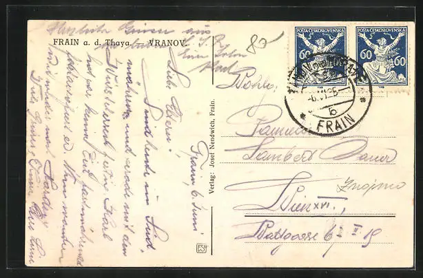 AK Frain a. d. Thaya, Ortspartie mit Brücke