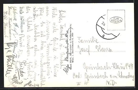 alte Ansichtskarte, gelaufen, Briefmarke entfernt, Rand beschnitten, Klebe- und Papierreste oben li., guter Zustand
