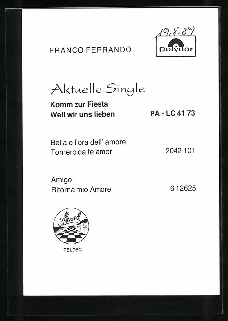 AK Franco Ferrando, original Autograph des Musikers