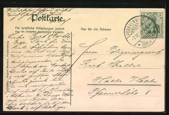 alte Ansichtskarte, gelaufen 1908, Eckknick oben links, guter Zustand