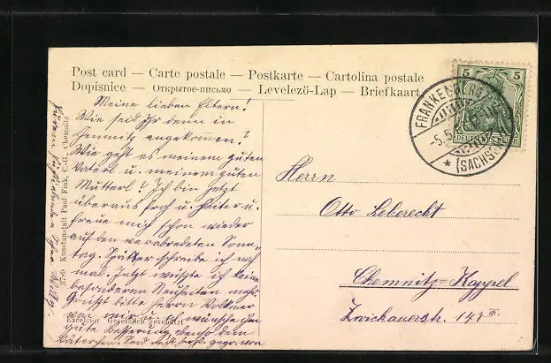 alte Ansichtskarte, gelaufen 1908, Eckknick re. unten, guter Zustand