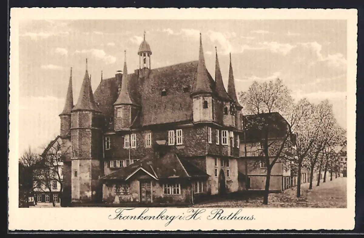 AK Frankenberg i. H., Rathaus mit Strassenpartie