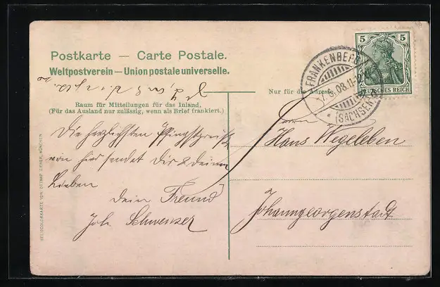 alte Ansichtskarte, gelaufen 1908, Eckknick oben rechts, guter Zustand