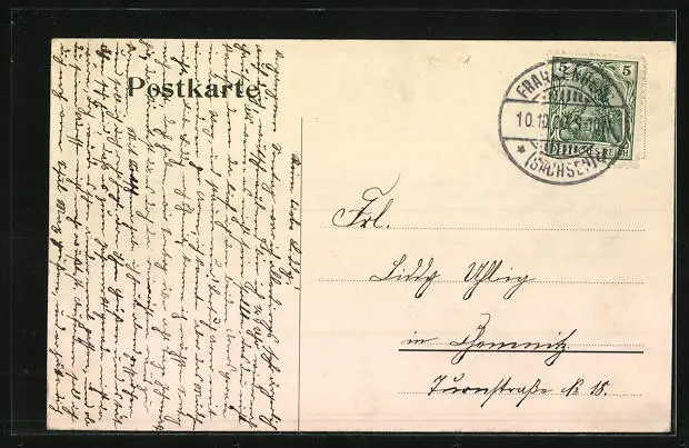 alte Ansichtskarte, gelaufen 1907, Eckknick re. unten, guter Zustand