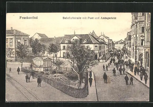 AK Frankenthal, Bahnhofstrasse mit Post und Amtsgericht