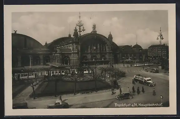 AK Frankfurt, Hauptbahnhof mit Strassenbahn, Leute, Autos
