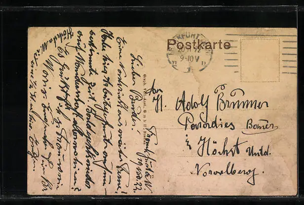 alte Ansichtskarte, gelaufen 1922, Briefmarke entfernt, Stempelspur, leicht fleckig, guter Zustand