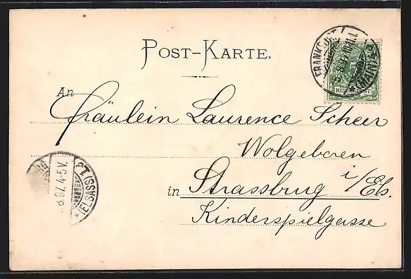 alte Ansichtskarte, gelaufen 1897, Abriebspur li. unten
