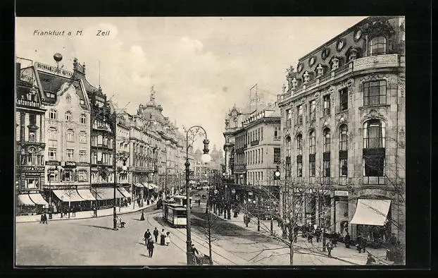 AK Frankfurt / Main, Zeil mit Strassenbahnverkehr