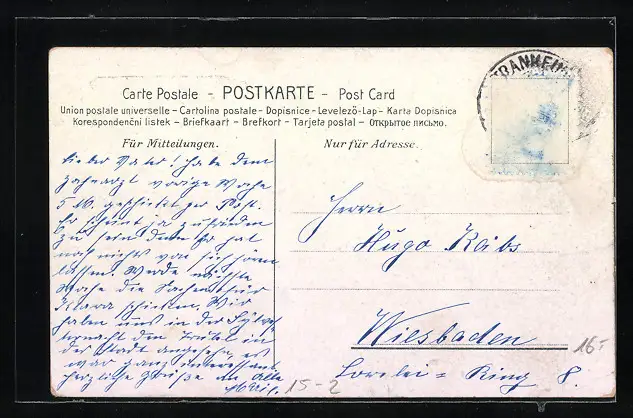 alte Ansichtskarte, gelaufen, Briefmarke entfernt, guter Zustand