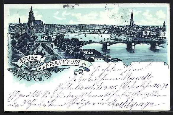 AK Frankfurt, Panorama m. Kirchen u. Brücke