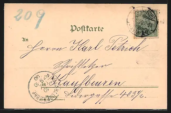 alte Ansichtskarte, gelaufen 1900, guter Zustand