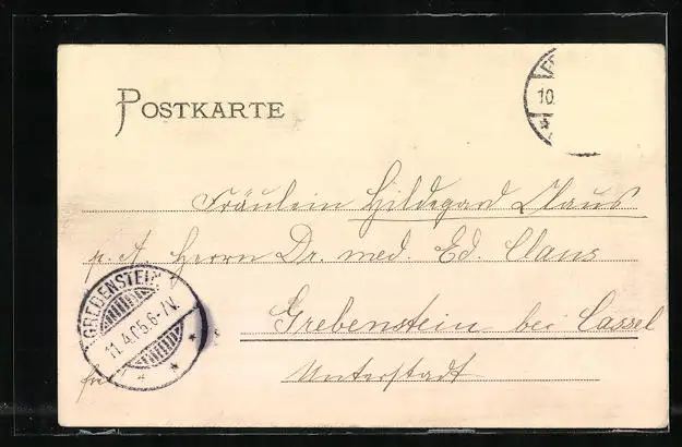 alte Ansichtskarte, gelaufen 1905, Briefmarke entfernt, rückseitig Oberflächenschaden, guter Zustand