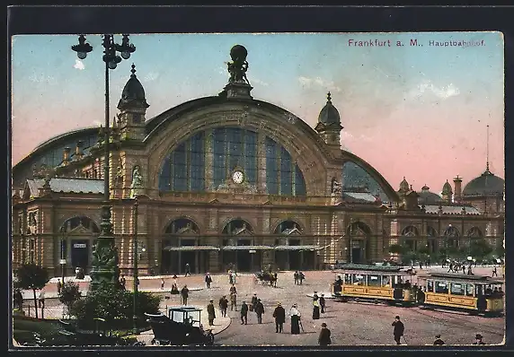 AK Frankfurt, Strassenbahn und Autos vor dem Hauptbahnhof