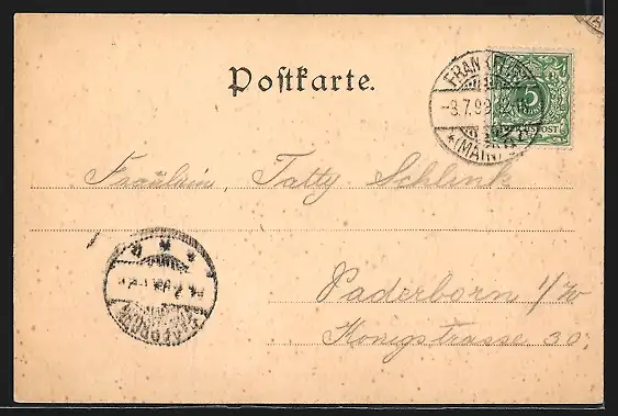 alte Ansichtskarte, gelaufen 1899, guter Zustand