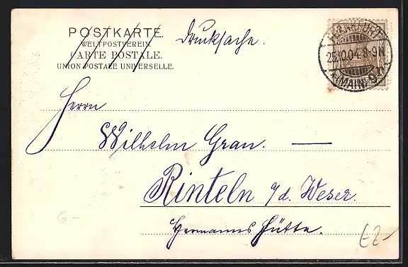alte Ansichtskarte, gelaufen 1904, guter Zustand